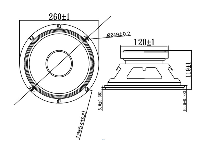 | Voice Coil Imp. | 8 ± 1.2 Ω ( 200 Hz 1 V ) |