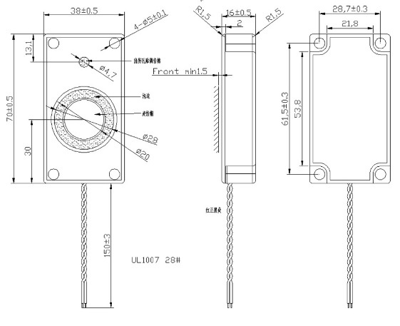 | Outer Dimensions | 70*38 mm(See attached drawing) |