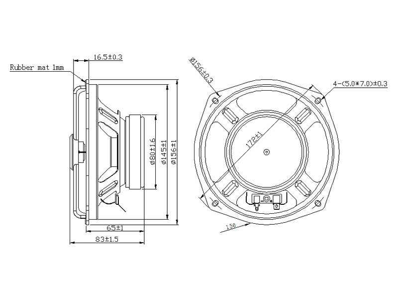 | Outer Dimensions | 156 mm(See attached drawing) two-way/speaker |