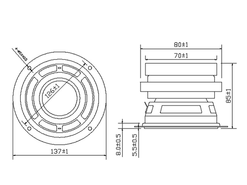 | Voice Coil Imp. | 4 ± 0.6 Ω ( 250 Hz 1 V ) |