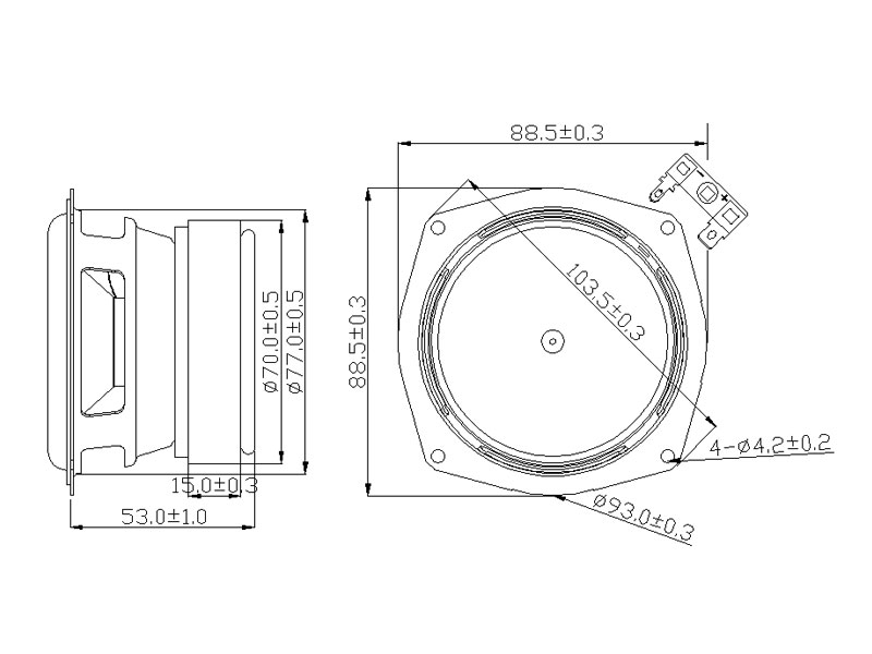 | Sound Pressure Level | 79 ± 2 dB ( 1 w 1 m ) at(0.4)(0.6)(0.8)(1.0)KHZ |