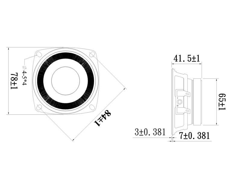 | Voice Coil Imp. | 4 ± 0.6 Ω ( 350 Hz 1 V ) |
