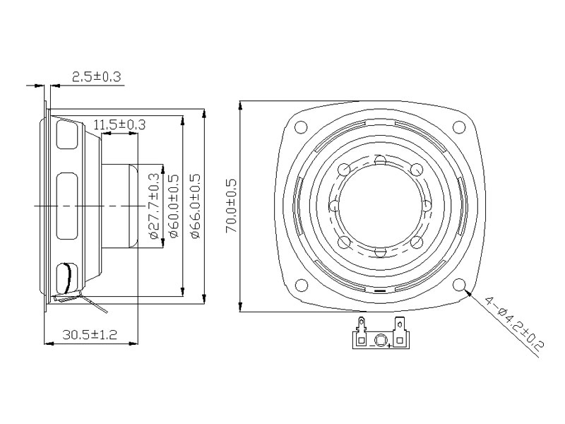 | Sound Pressure Level | 90 ± 2 dB ( 1 w 0.5 m ) at(0.6)(0.8)(1.0)(1.2)KHZ |