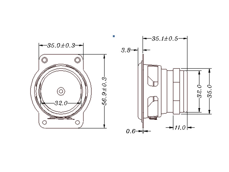 | Voice Coil Imp. | 4.5 ± 0.7 Ω ( 500 Hz 1 V ) |