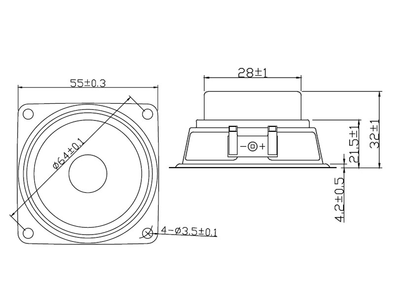 | Voice Coil Imp. | 4 ± 0.6 Ω ( 500 Hz 1 V ) |
