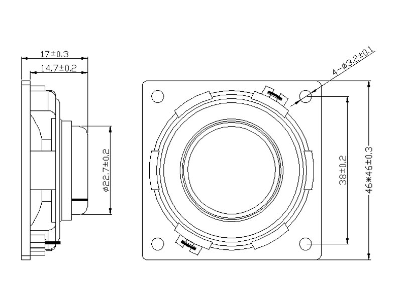 | Outer Dimensions | 46*46 mm(See attached drawing) |
