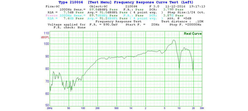 | Voice Coil Imp. | 4 ± 0.6 Ω ( 600 Hz 1 V ) |