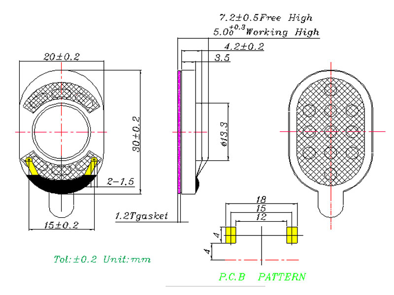 | Sound Pressure Level | 90 ± 2 dB ( 0.1 w 0.1 m ) at(1.0)(1.2)(1.5)(2.0)KHZ |